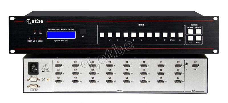 - 本公司24进1出HDMI+A切换器采用多路进单路出的架构模式,通过多种控制方式管理应用环境中音视频信号的输入输出。产品外观端庄大方,质感性较强;硬件芯片组性能优越稳定、切换处理速度快捷、收发分辨率可达4K*2K/30Hz、发送与接收距离均可达30米(1080P/60Hz)、视频信号传输质量无失真无延时。在传输视频信号的同时可分离出视频信号中音频分量并通过3.5音频座输出给外界音频功放设备,解决客户使用中需要音频分离的需求。此系列产品应用场景广泛,如指挥室、会议室、展厅、控制中心等等