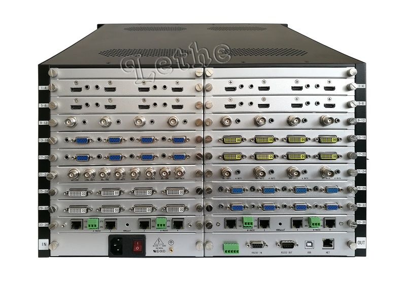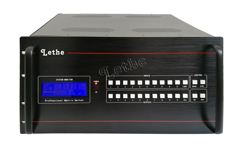 - 本公司高清混切矩阵采用5mm纯黑色氧化拉丝铝面板、乳白色进口超低音按键、104*39mm蓝底背光液晶屏的外观设计,外行端庄大方、结构衔接紧密、手触质感结实,被广泛用于军队、电信、电力、石油、科研等领域。产品使用的机箱经特殊工艺处理可有效屏蔽现场环境引起的射频干扰,确保设备在恶劣的环境下能够正常运行;模块化结构易于日后升级扩容及维修;外形尺寸和安装定位严格按照19寸标准机柜设计,目前工厂标准从8-8至72-72;其它非标准产品可来电定做加。支持HDBaseT、CVBS、 YPbPr、VGA、 DVI-I、HDMI、SDI等多种格式的视频信号输入输出;支持视频格式的相互转换;支持视频信号无缝切换;支持分辨率转换;支持音频编码解码。